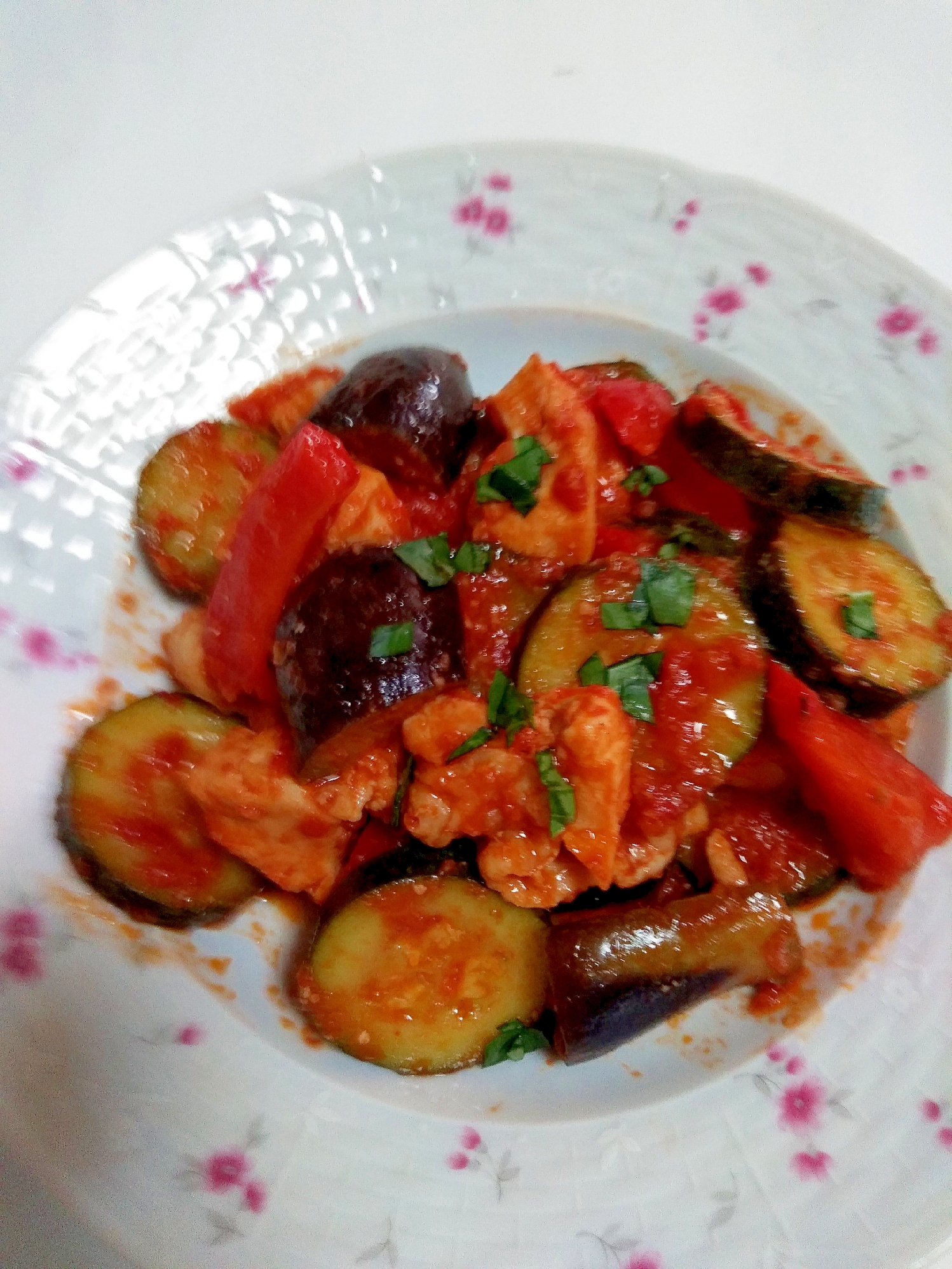 鶏肉 夏野菜 トマト煮込みのギャラリー